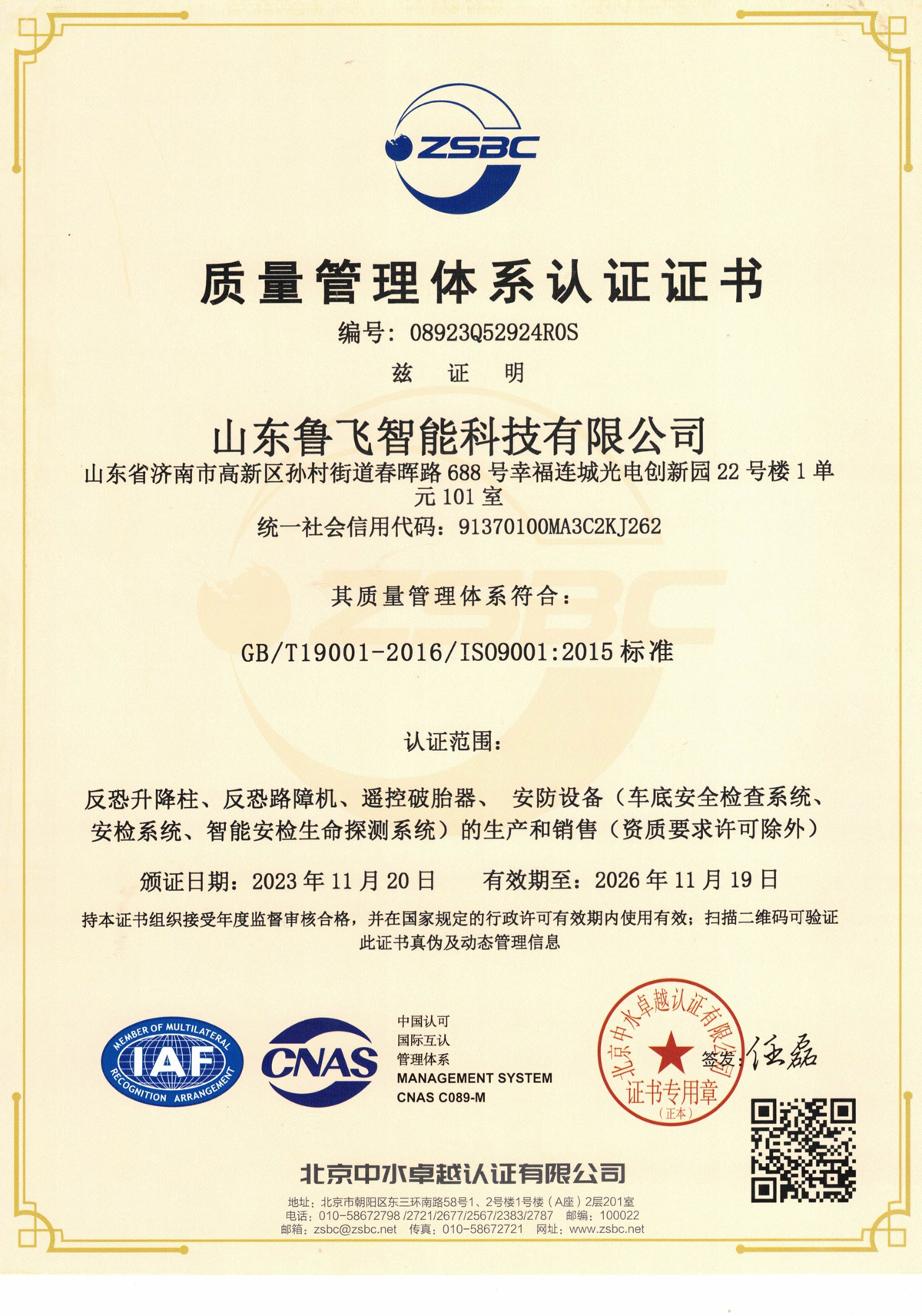 魯飛智能科技有限公司是集“設計、研發(fā)、生產、銷售”為一體的高新技術企業。專業從事反恐防暴升降路樁、防暴路障、破胎器、車底檢測系統、微震生命探測儀、安檢門、安檢機、拒馬、電動伸縮門、無人機反制系統、無人機反制槍、車載無人機反制、便攜式無人機反制槍等系列產品的生產與銷售。